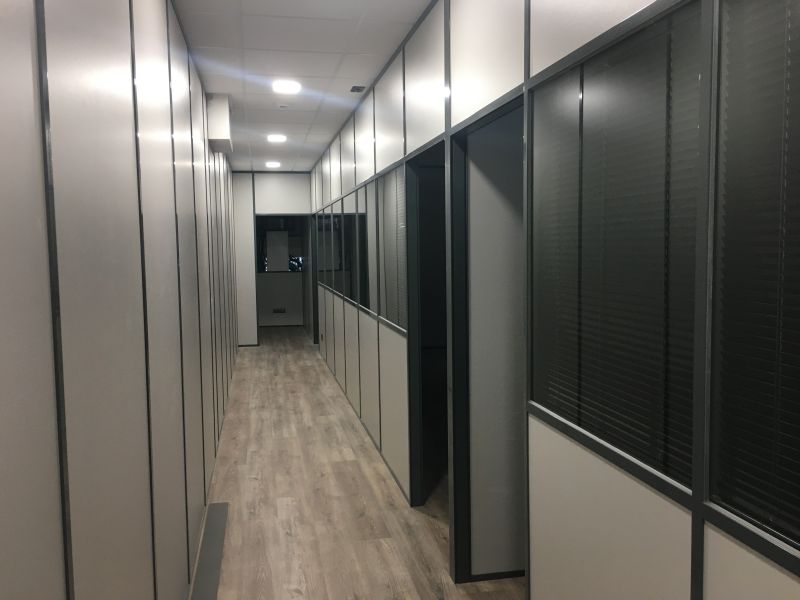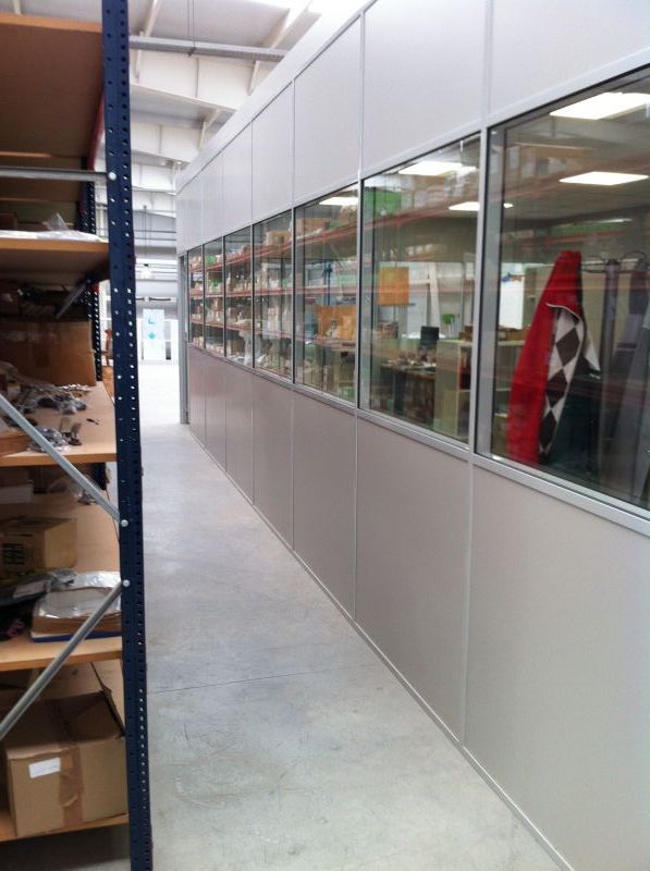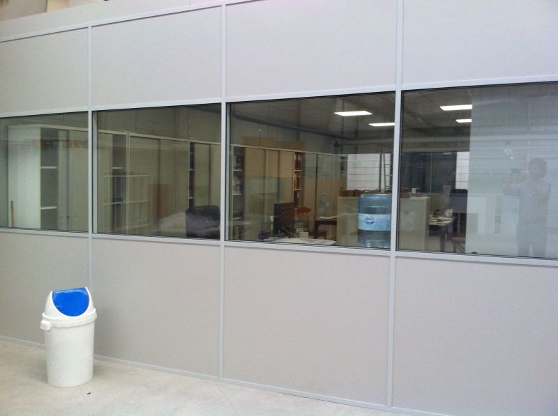 A divisória modular STD80 é um sistema de divisão de espaço multifuncional, autoportante de perfil de alumínio extrudido, composta por montantes verticais e travessas horizontais com a mesma secção, fixados entre eles através de garra metálica.
